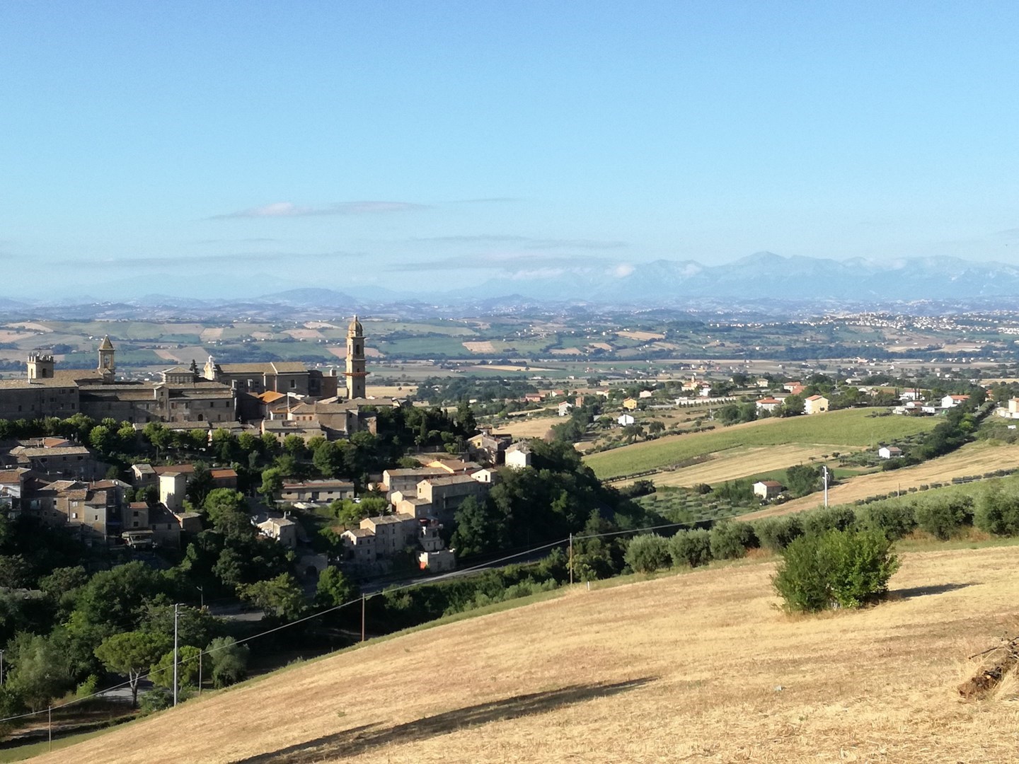Perdendoci tra i vividi colori della campagna, continuiamo ad approssimarci al mare, facendo una sosta per ammirare lo splendido paesaggio che si apre di fronte a noi: la vista spazia dal Monte Conero alla costa fermana.