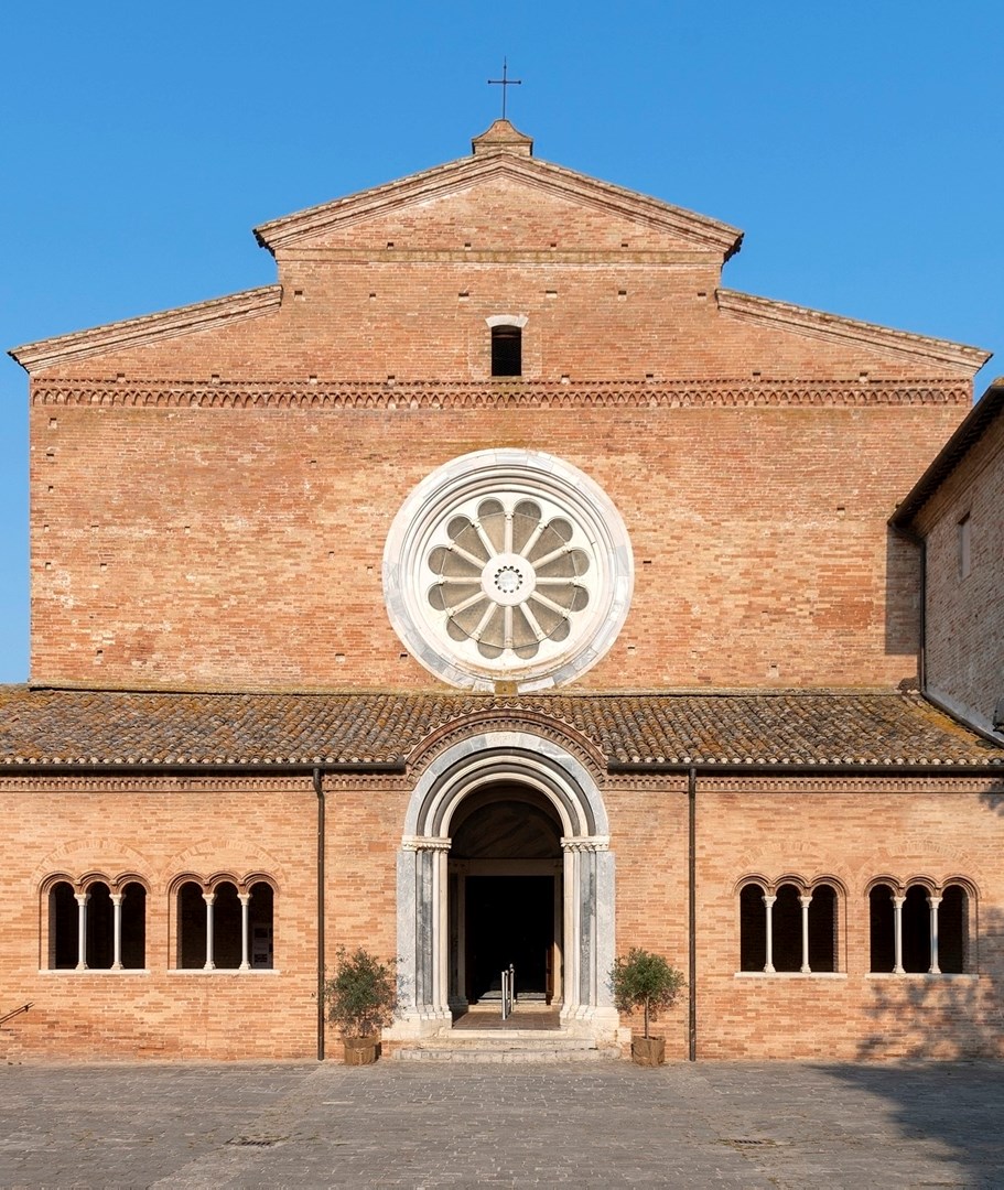Siamo al cospetto di un gioiello dell’architettura romanica che è una delle più antiche e importanti testimonianze della storia medievale delle Marche: la splendida chiesa di cui si hanno notizie dall’XI secolo, sembrerebbe esser stata l’antica cappella palatina di Carlo Magno, secondo la leggenda.